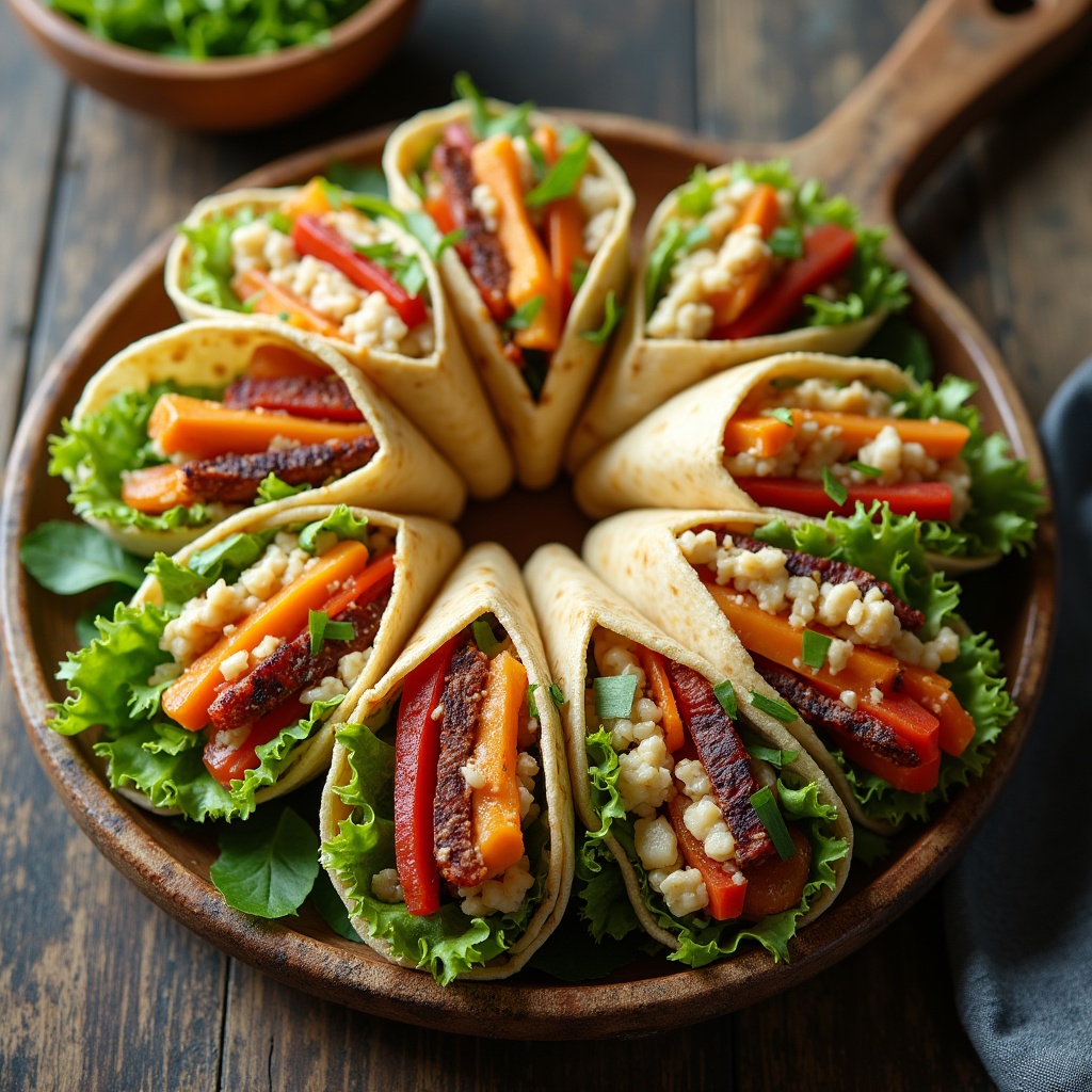 Plateau varié de wraps frais, parfait pour vos événements ou pauses gourmandes à partager.